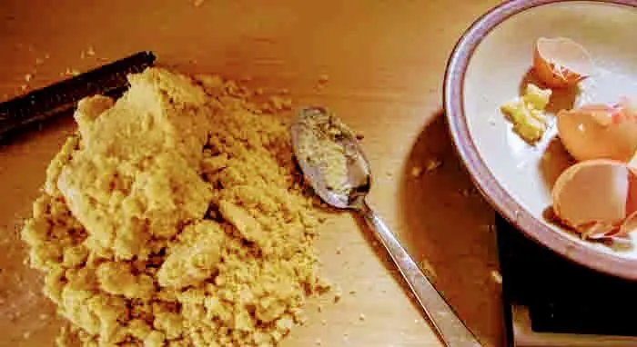 - Now add the egg and sugar mixture and the butter at room temperature.